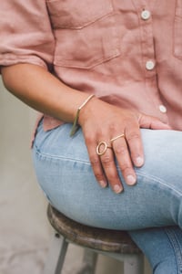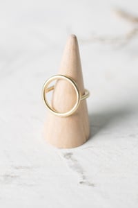 Add a subtle statement to your capsule wardrobe with this minimal round top ring available in Brass or recycled silver.